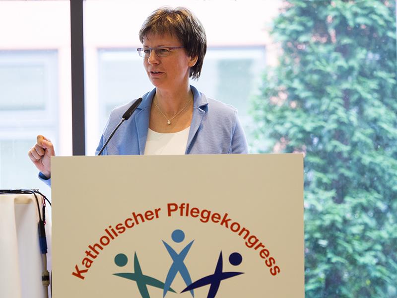 "Christsein in der Pflege - was ist gute Pflege wert?" lautete das Kongress-Thema. Die Berliner Caritasdirektorin Prof. Ulrike Kostka betonte zur Begrüßung: "Mir ist es wichtig, dass Pflege eine starke politische Stimme bekommt und dadurch auch an Macht gewinnt." Dazu gehöre ebenso die gegenseitige Wertschätzung, die gegenseitige Stärkung der Pflegenden untereinander, so Kostka weiter. "Sie alle können etwas bewegen", ermutigte sie die Kongress-Teilnehmer.