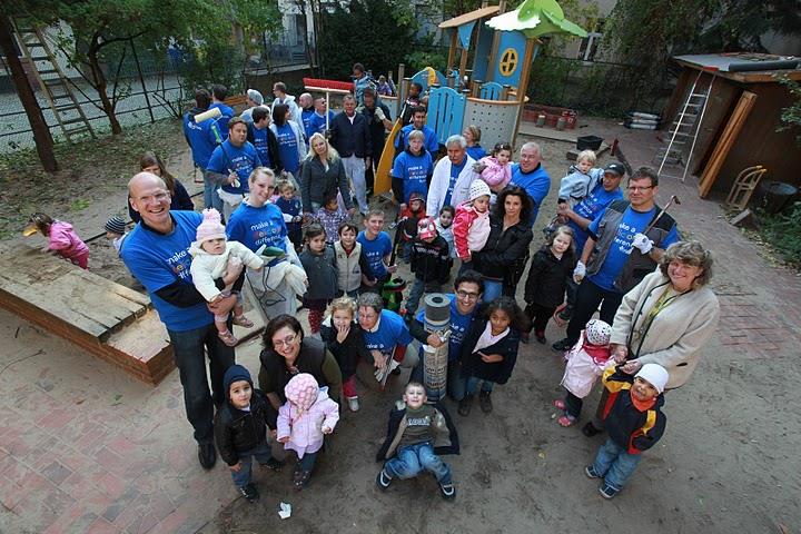 Bei strahlend schönem Herbstwetter hatten die Kinder und Erzieherinnen der Kita willkommenen Besuch und das Team von Kraft Foods das schöne Gefühl, wirklich geholfen zu haben sowie eine schöne Abwechslung zum Arbeitsalltag.